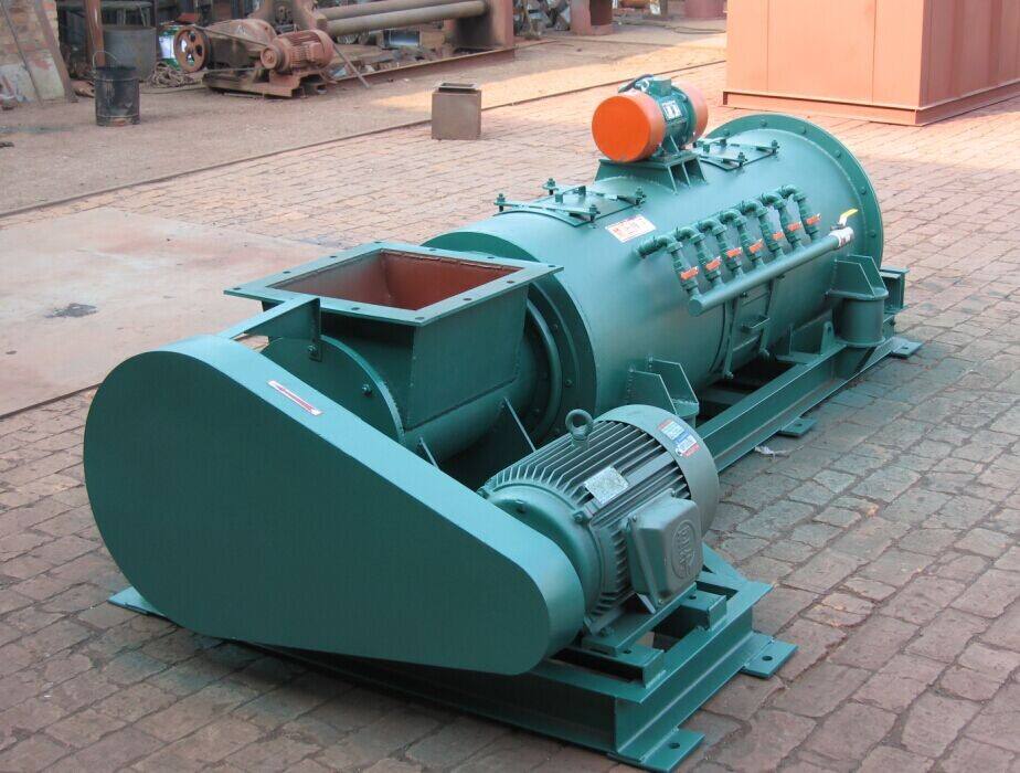 本實用新型結構緊湊,綜合性能好,技術先進,工藝合理,可靠性高,密封性能好,調水磨損小,處理量大,使用壽命長,連續(xù)運行,故障率低.加濕混合器配有兩組螺旋葉片機送入主機.進入攪拌槽和攪拌槽的干灰粉料,強制與供水裝置供水混合攪拌.同時將滿足濕度要求的物料輸送至出口卸料.