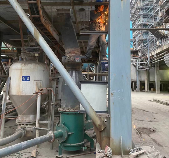 料封泵一般安裝在料倉底部,新投產(chǎn)的料封泵應(yīng)先把活動(dòng)風(fēng)管外腔加入足量的潤滑油,再通過執(zhí)行機(jī)構(gòu)對(duì)活動(dòng)風(fēng)管進(jìn)行調(diào)整,來改變噴嘴與噴頭之間的距離,通過調(diào)試來選擇一個(gè)比較理想的位置同時(shí)記下標(biāo)尺刻度,開始正常工作。停機(jī)時(shí)先使噴嘴與噴頭閉合并使管道內(nèi)物料全部輸送完才能停風(fēng)。料封泵只有在料面具有一定高度時(shí)才能正常工作,如果料位低于一定值時(shí)輸送量就會(huì)減少,如果突然停氣等原因使管道堵塞時(shí),應(yīng)使噴嘴與噴頭閉合吹起直至管道暢通。